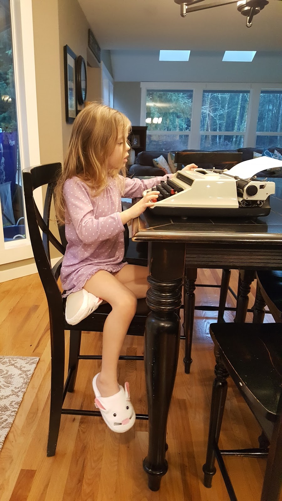 The kids have been enjoying their new books from Christmas. Haley has whipped through maybe five chapter books this break, and JT (who is more of a grazing type reader, having several books going at a time) is never far away from something non-fiction. Also, my parents bought Haley her own typewriter. Manual. She has typed two pages of two different stories and she is adorable.