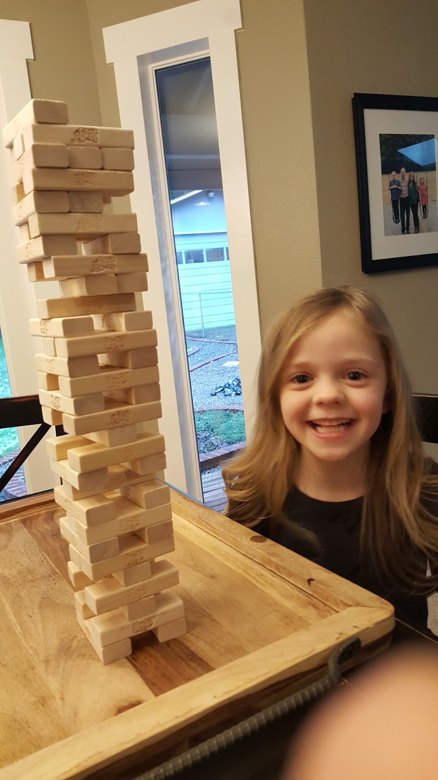 I had some time alone with Haley this week while JT was at baseball camp with Jim. She spent it very active… gymnastics followed by a mile run in which Haley shaved one minute off her last time. Then we played Jenga and built a really tall tower – twice!