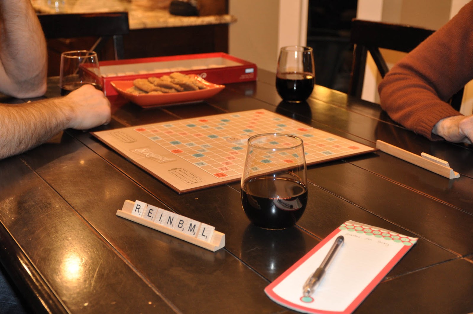 After dinner, the children went to bed and the adults enjoyed wine and Scrabble!