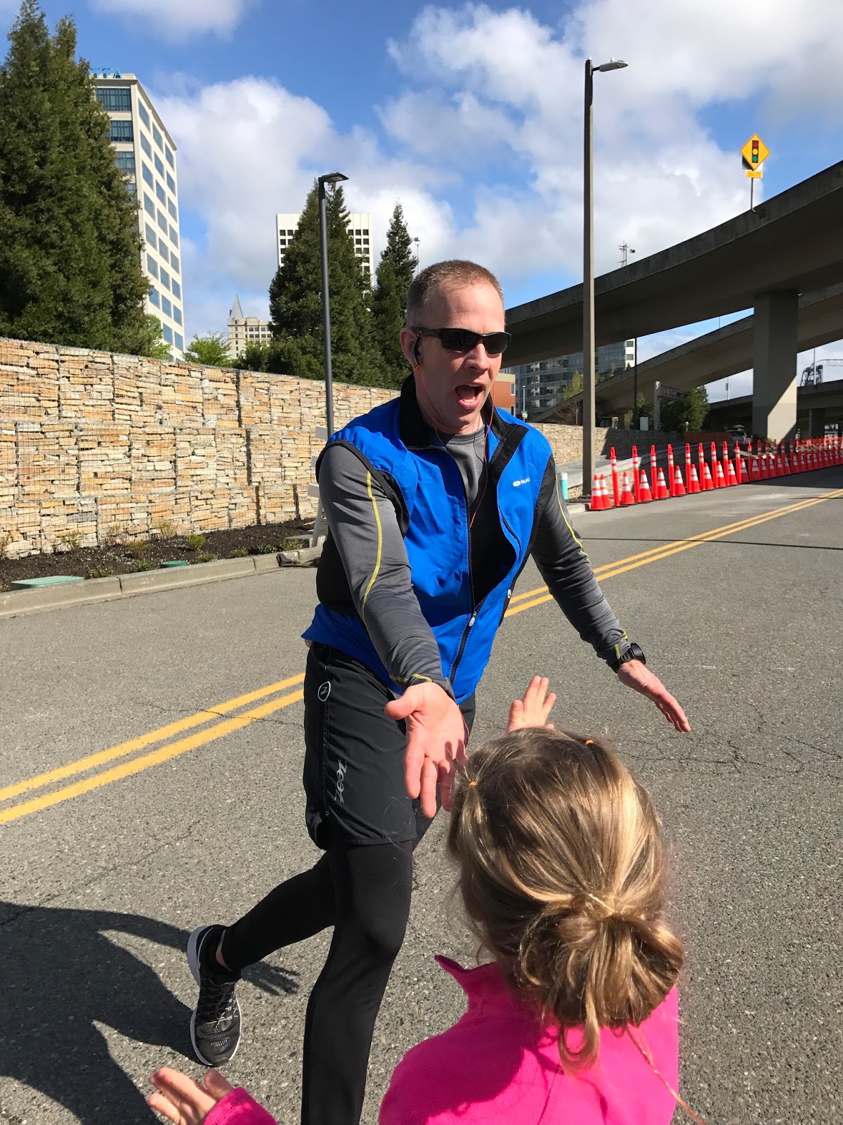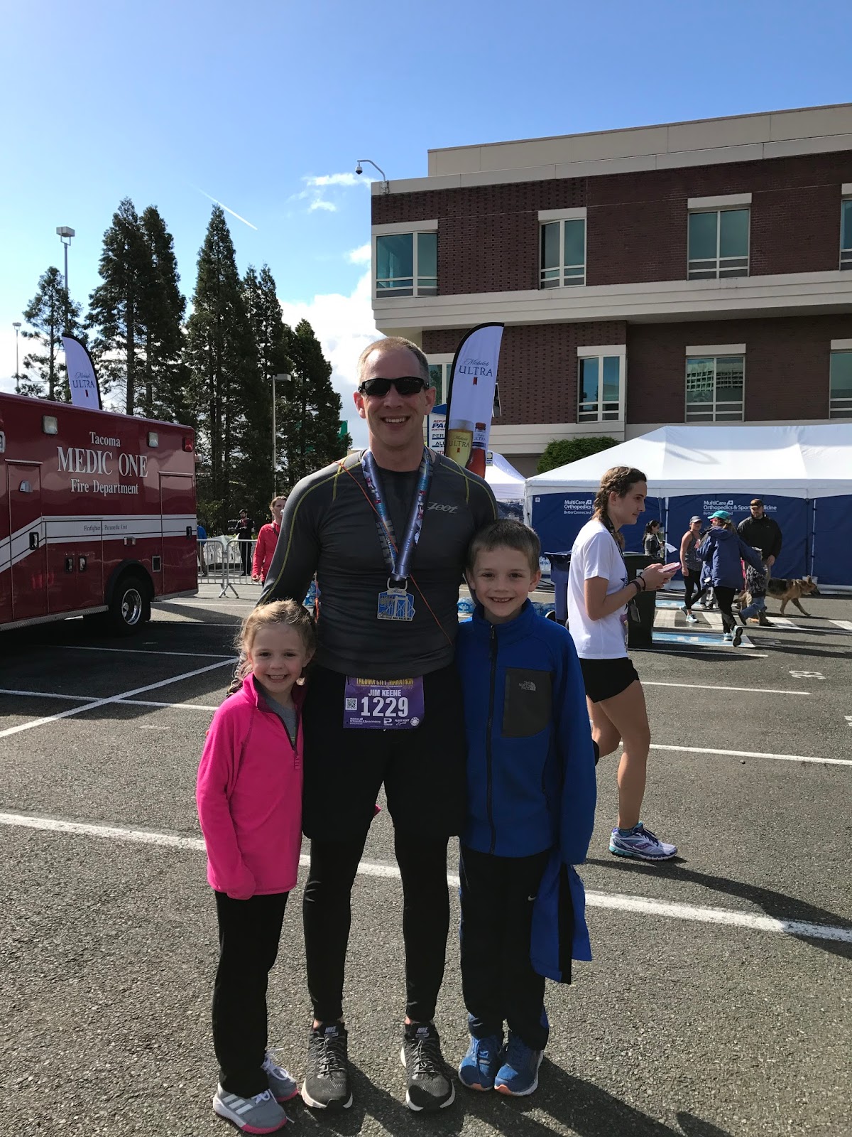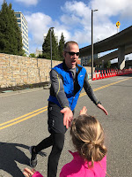 Then we went to the finish line area, found parking, chilled in the car for a bit, and finally walked down to see Jim cross the finish line.