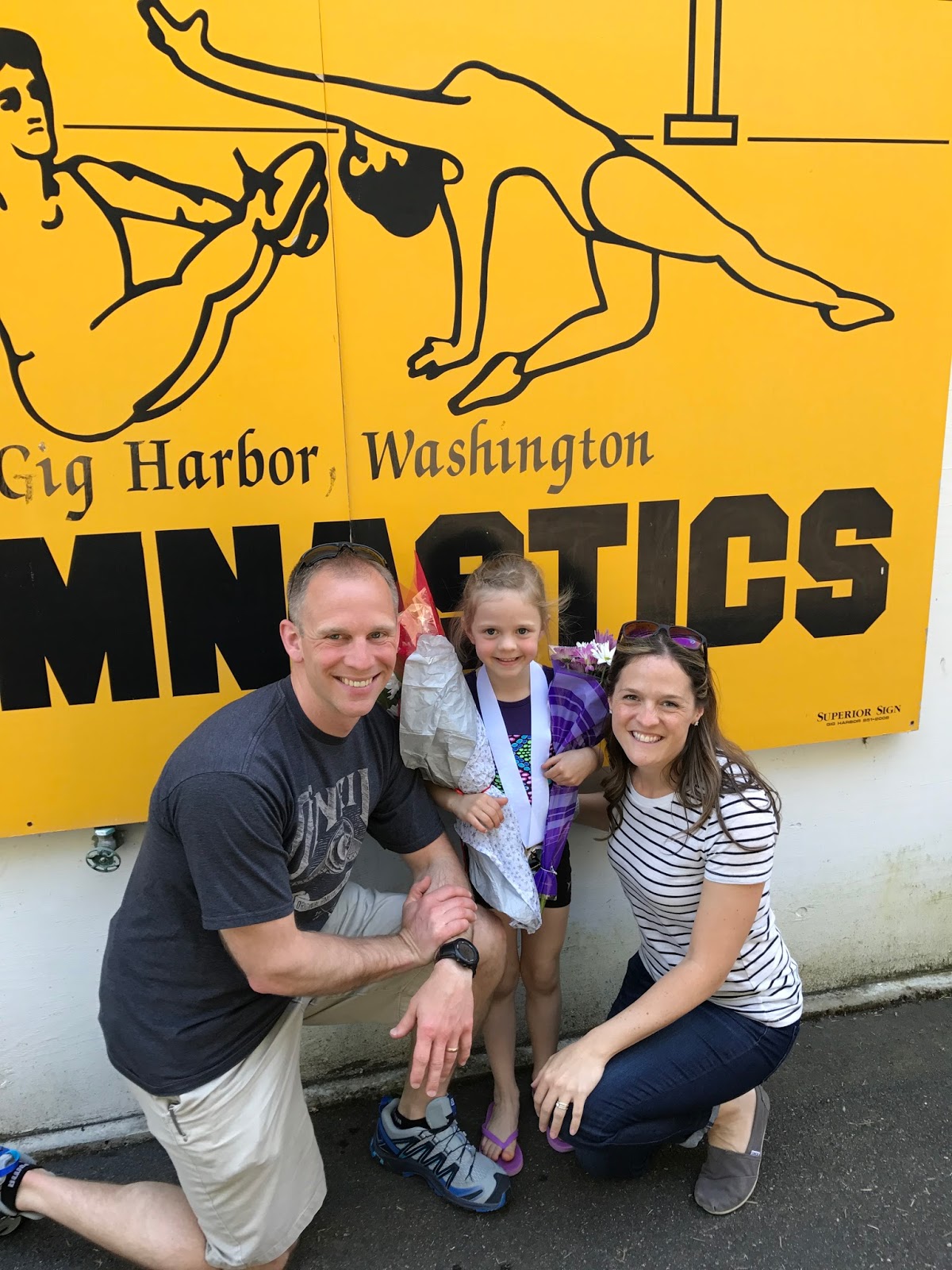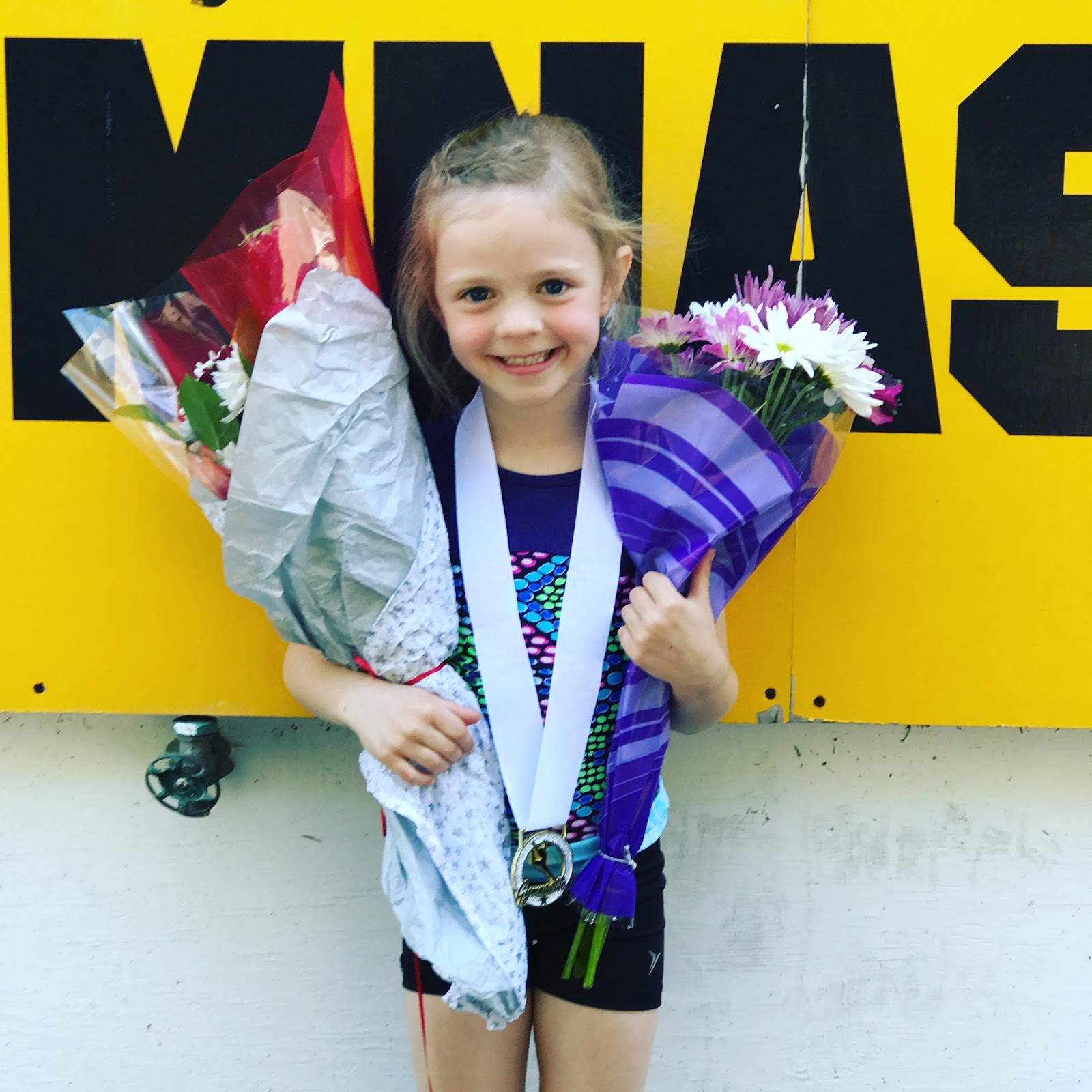Haley had her year-end gymnastics event called the Mini Olympics over the weekend. She got a chance to show her progress on all four apparatuses and go up to the podium to receive a medal and certificate. She had all four grandparents, both parents, and an aunt and uncle in the stands cheering for her at each apparatus. She was definitely the most cheered-for athlete.