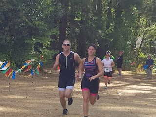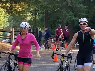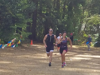 Last year I completed my first ever triathlon at the Tri Turtle Tri, and set my goal to complete more this summer so I could finish this course in two hours or less. Since we had done other races this summer, and because I asked :), Jim agreed to stay with me for this race and encourage me to do my best. He did an amazing job helping me push myself without using up all of my energy too early in the race. I had so much more fun finishing with my favorite buddy too!