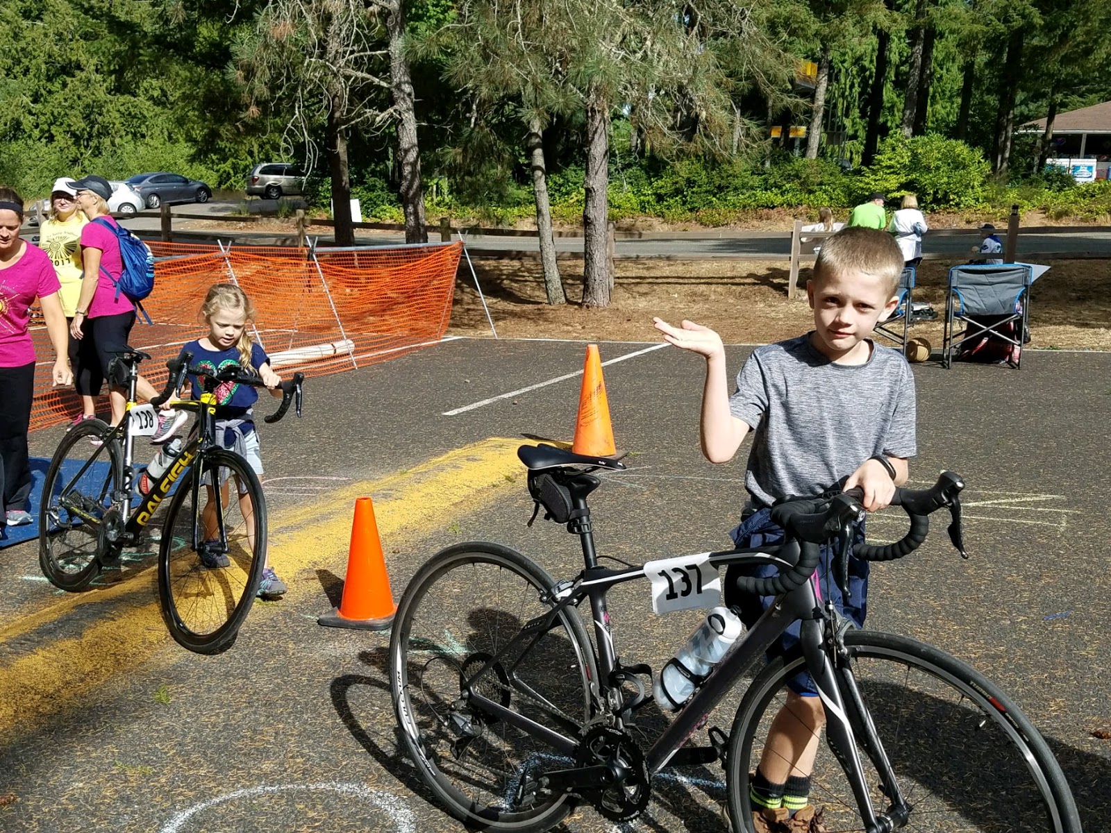 The kids were our bike caddies back to the car. Cutest little helpers ever.
