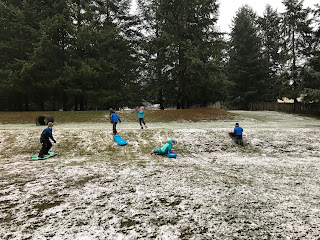 On Sunday, we spent some time at our park sledding in the slush. The kids were determined to make it work with the snow and grass combination!