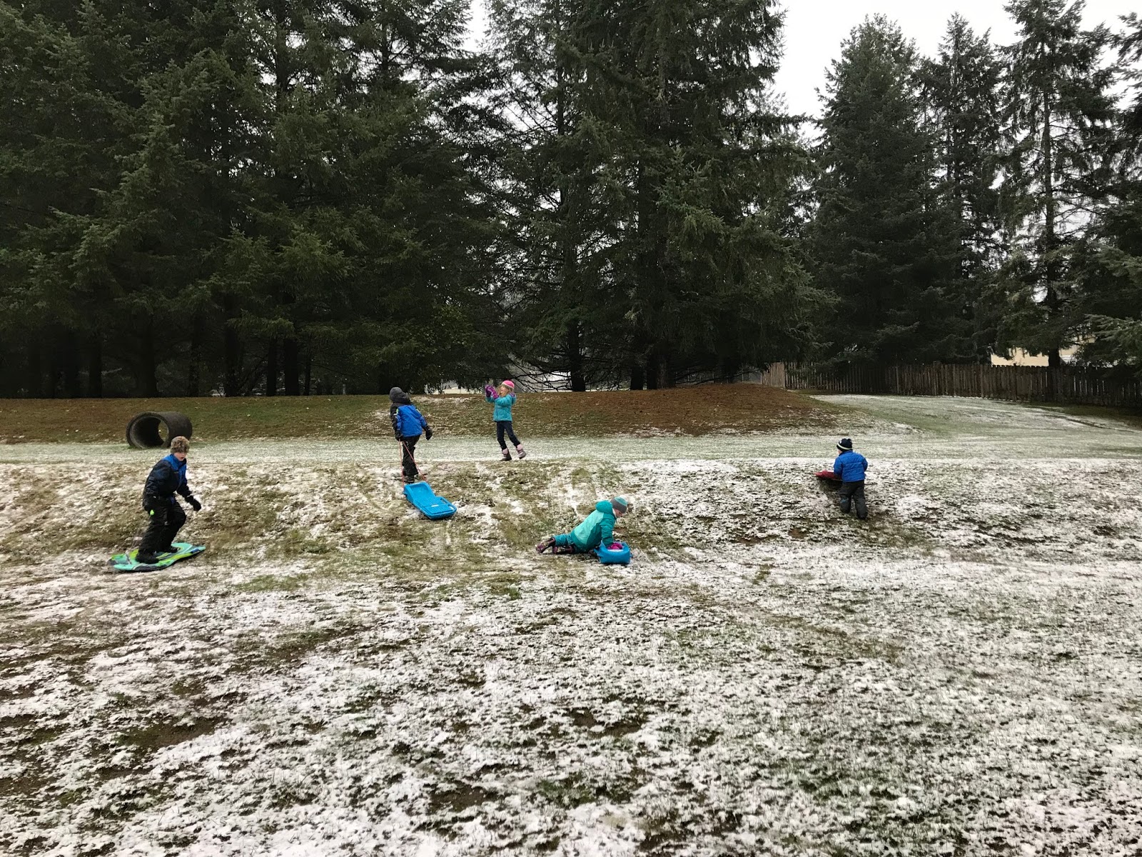 On Sunday, we spent some time at our park sledding in the slush. The kids were determined to make it work with the snow and grass combination!