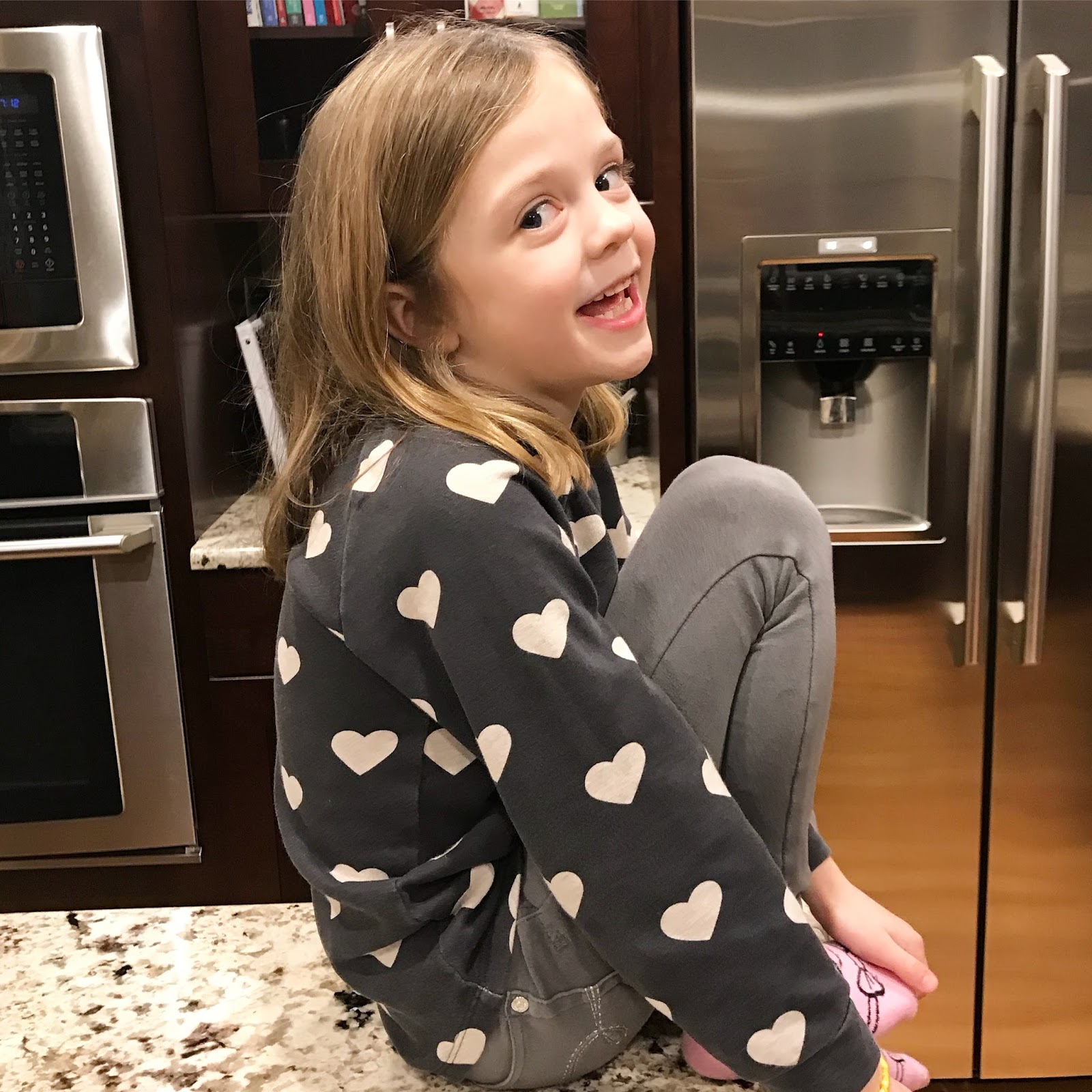 Then I took some more photos as she worked on her piano theory book and hung out with me in the kitchen. She was not happy with this photo shoot but I managed to get some smiles. 🙂