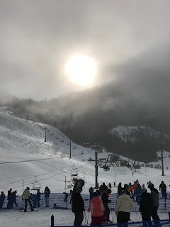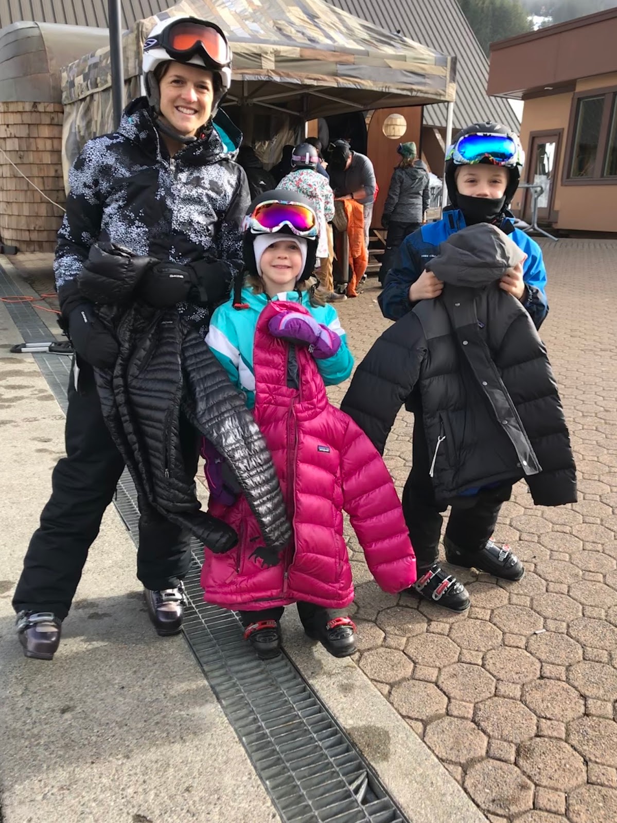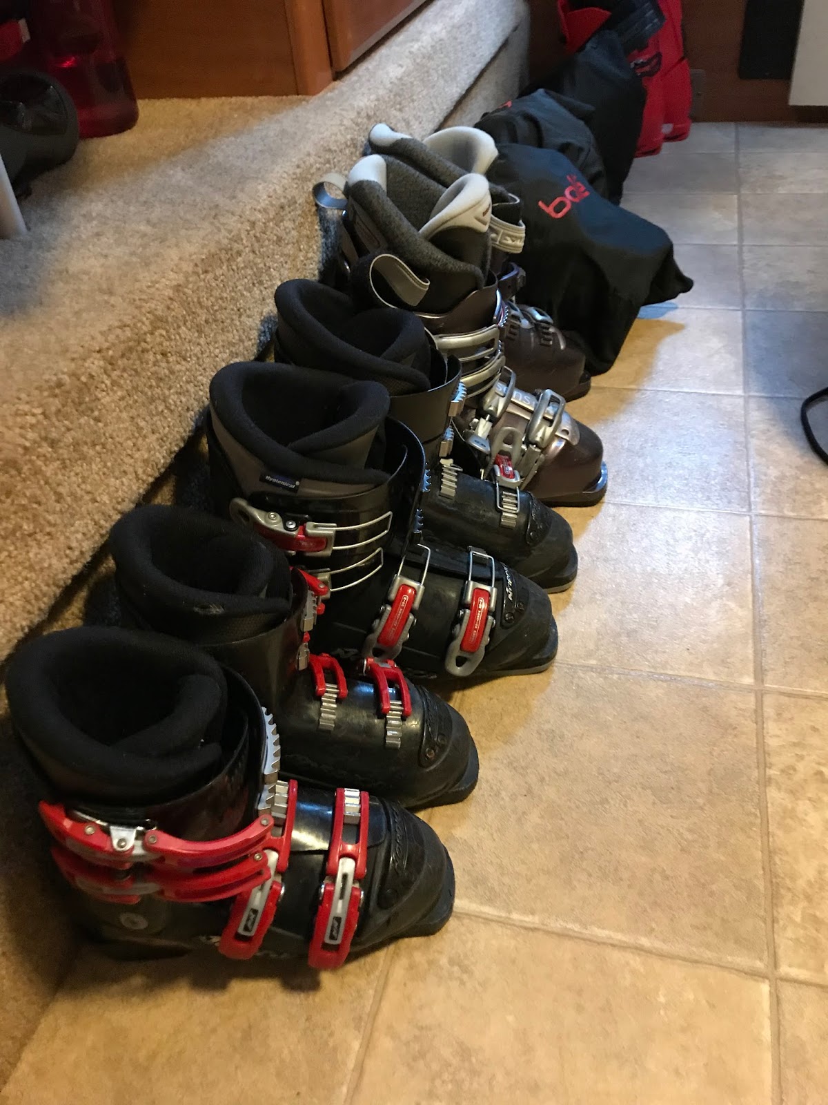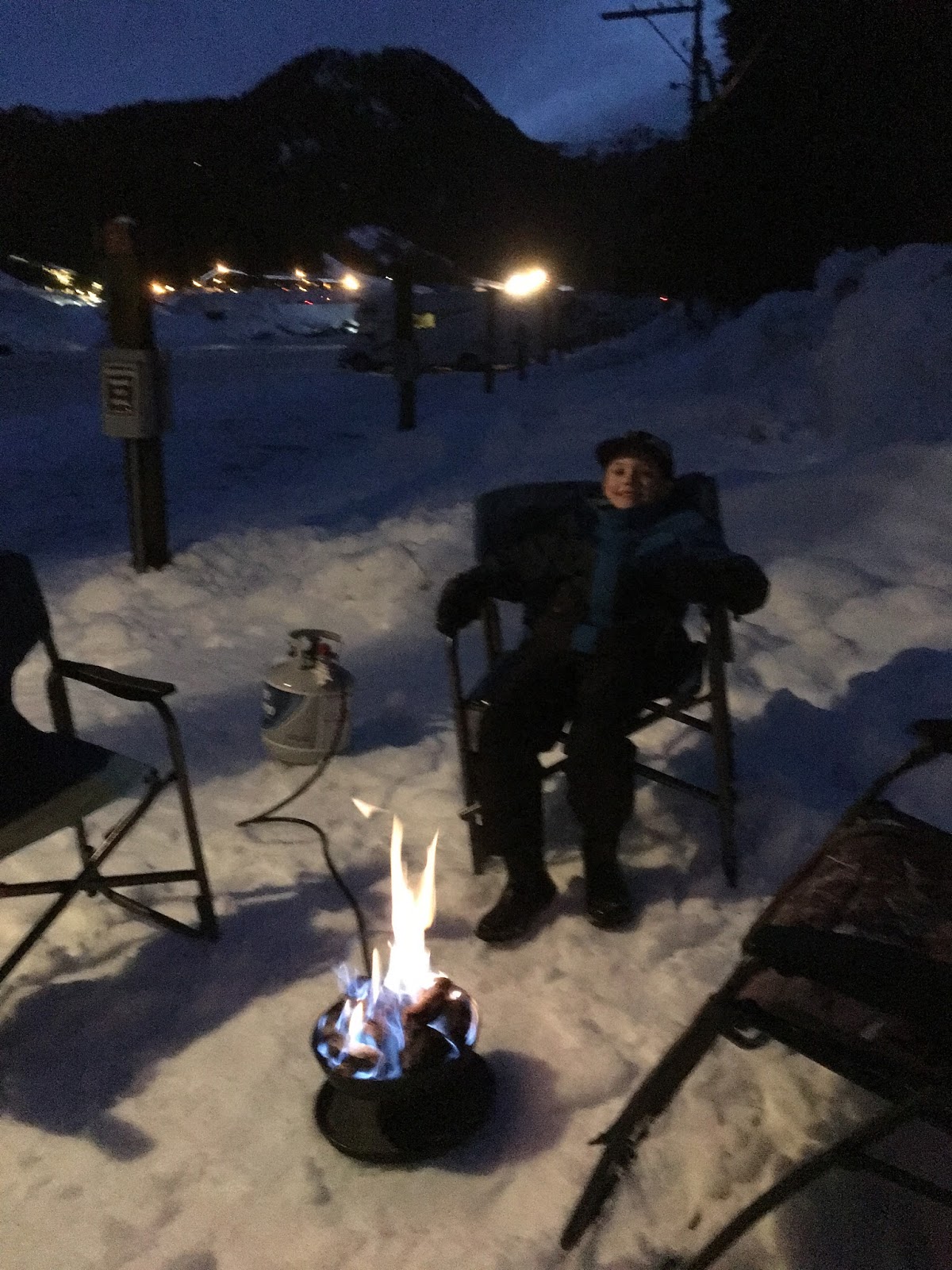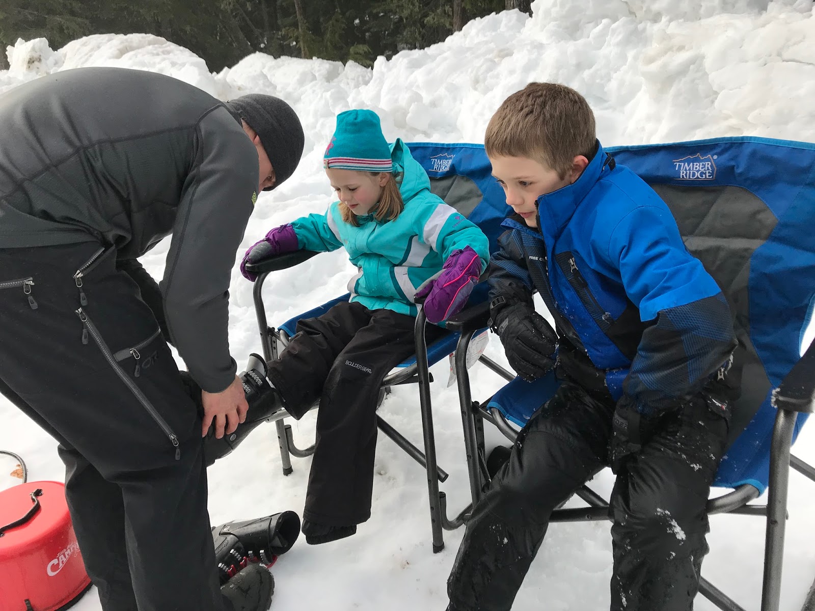 It turns out, getting ready for skiing with the camper is easier than in the car. No more standing on one foot with the kids on the tailgate. I told Jim we should bring the chairs every time!