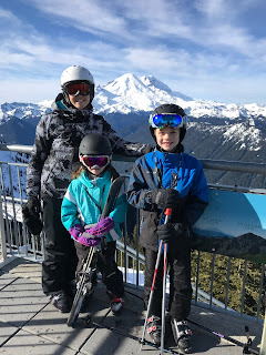 Jim had to work on Saturday, but that didn’t stop the kids and I from heading up the mountain for the day. The weather was gorgeous and the kids improved so much during the day. They learned how to ski on a little bit of ice and we spent the whole day on blue/intermediate runs, which is more fun for all of us!