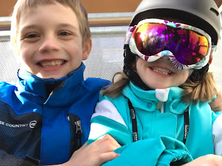 Jim had to work on Saturday, but that didn’t stop the kids and I from heading up the mountain for the day. The weather was gorgeous and the kids improved so much during the day. They learned how to ski on a little bit of ice and we spent the whole day on blue/intermediate runs, which is more fun for all of us!