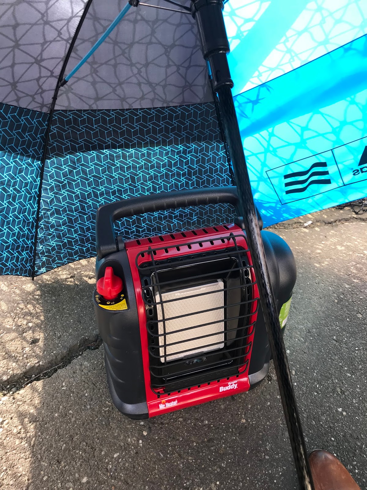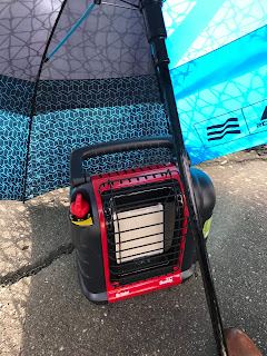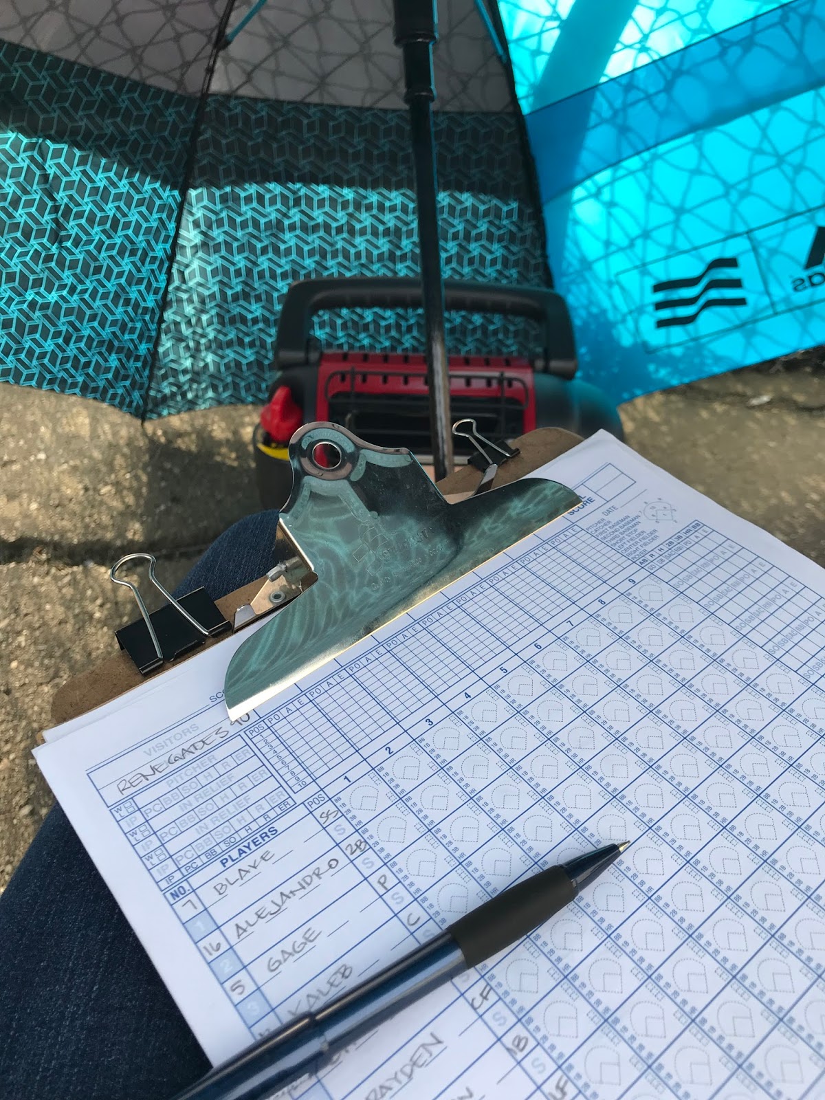 It’s not warm yet though! Jim bought me a portable heater for baseball games. The trick is to put an umbrella over the heater and keep all that awesome warmth underneath. It worked great for JT’s scrimmage this week – I kept score and kept warm!