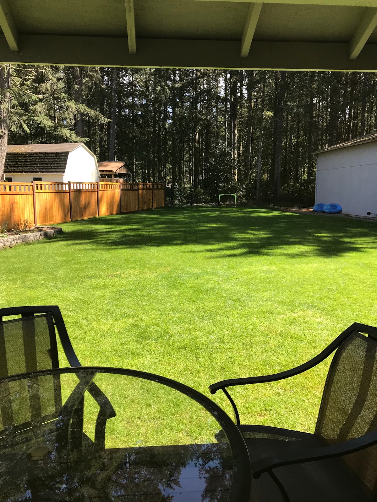 We had a spell of a LOT of rain last week and people around here were really, really ready for sunshine. And then it happened! I just love our house, and in the sunshine the view from my window (morning top, afternoon bottom) is just lovely.