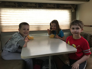 On Sunday, the weather turned rainy (surprise to everyone) and we got soaked with that fine misty rain that never ends here in the PNW. Fortunately, we had our camper! So during the lunch break in between games, we got toasty warm, dried our jackets and shoes, ate hot food and hot chocolate, and thoroughly enjoyed a dry place to hang out. Travis and Grandpa and Grandma Keene hung out with us too!
