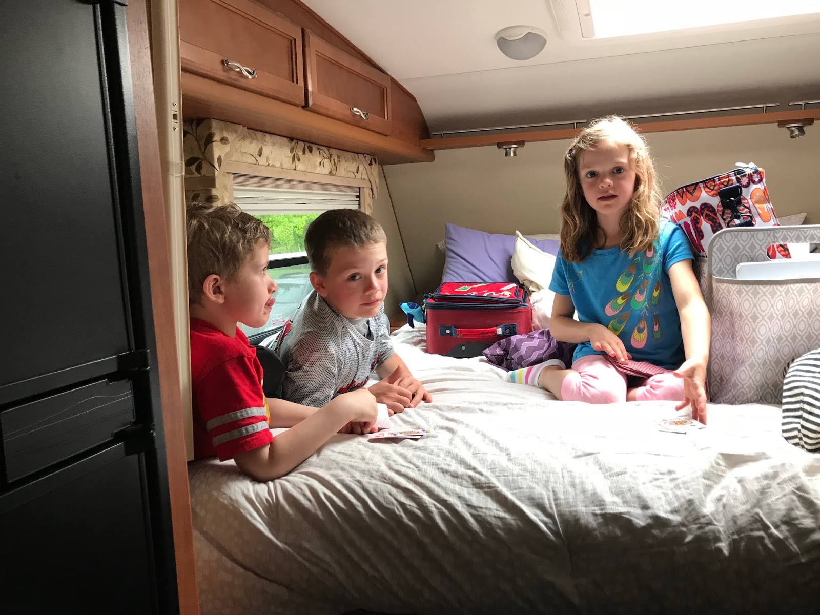 The kids had fun playing card games in the bed while the adults chatted at the table after lunch.