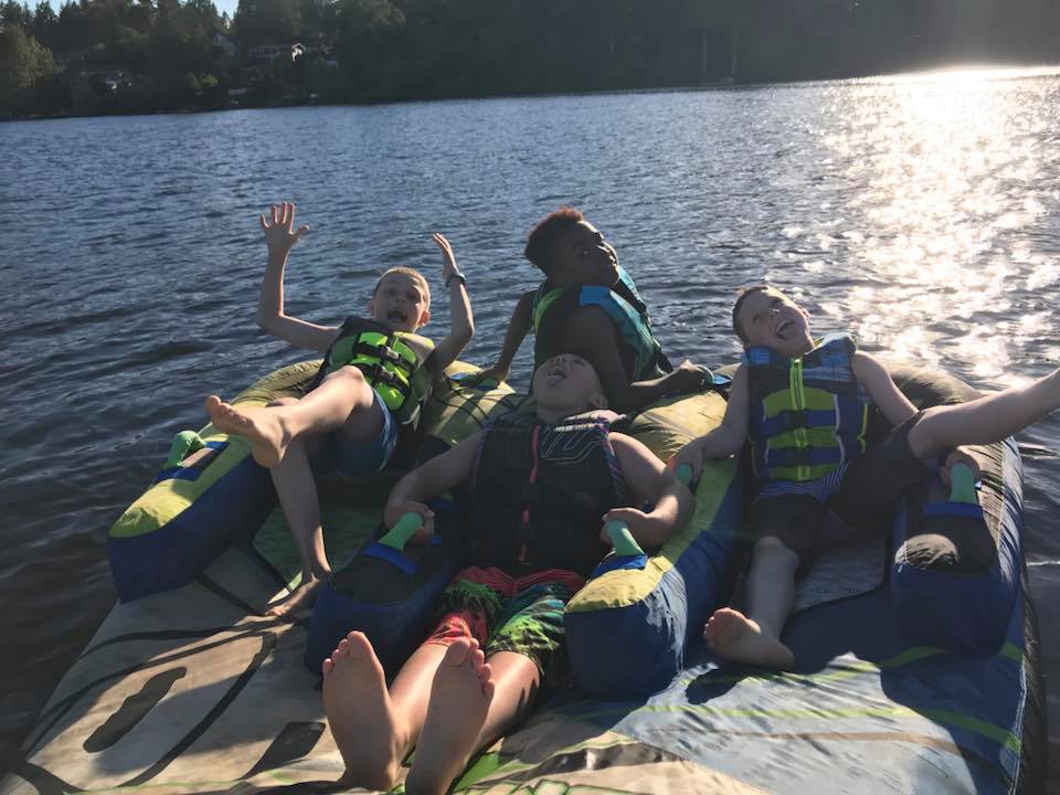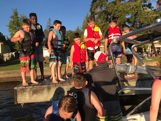 We had such a fun time at the Father’s Day barbecue that JT’s baseball team got together for. His coach lives on the lake and invited all the families after our games on Sunday – and the weather cooperated. It was 85 degrees and gorgeous all day long. So after two great games (in which JT continues to improve getting his bat on the ball; awesome) we headed to the lake. Everyone signed up to bring a side dish. We brought our boat. We pulled a team full of boys and their siblings and friends around the lake for three hours. It was soooo much fun!