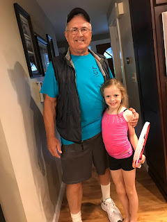 Also, Haley and JT played tennis with Grandpa Cole at our neighborhood tennis courts. Haley was a little sad that she didn’t have the right size racket of her very own… so a few hours later, Grandpa showed up with one!