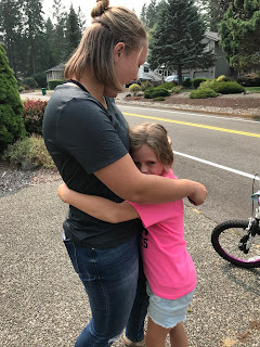 When we got back, the kids came running from play time in the neighborhood to say final goodbyes as they won’t see her until Christmas. Haley was particularly sad!