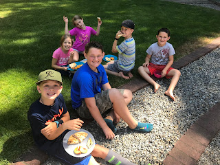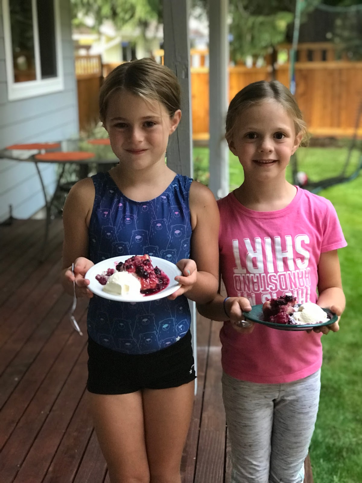 Shortly after we returned from vacation, the kids picked so many blackberries we decided to host a cobbler party. JT and Haley made the recipe (and tripled it, all by themselves) and we invited all the grandparents over to enjoy it with us!