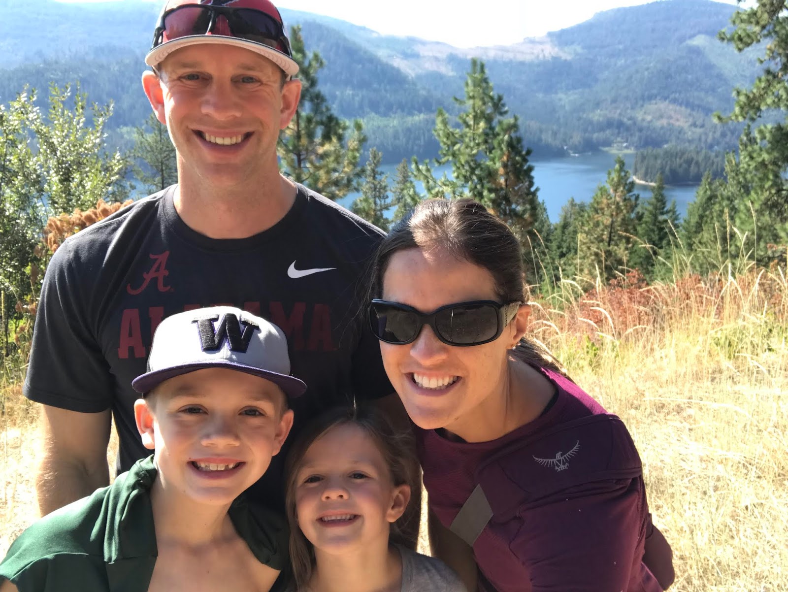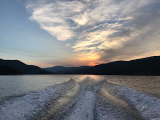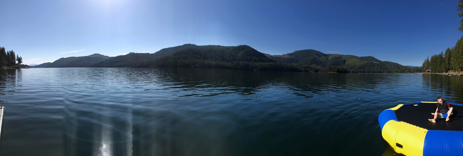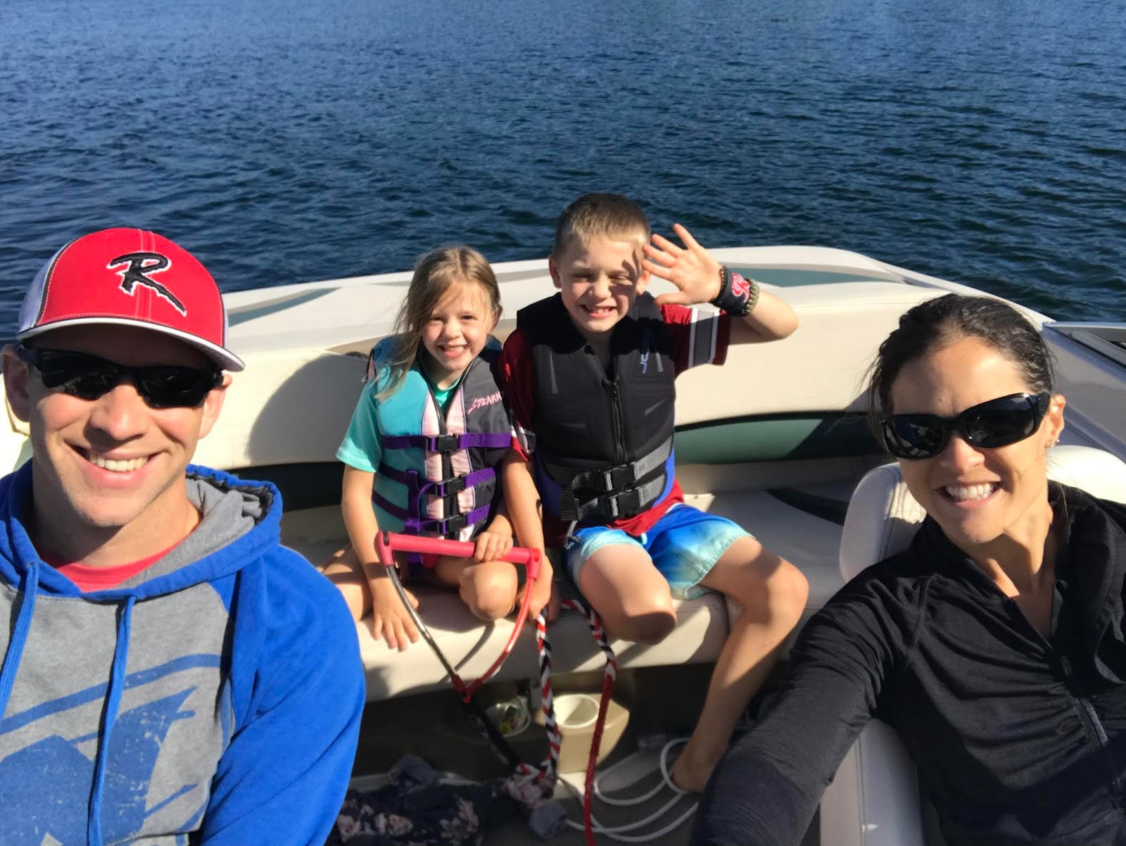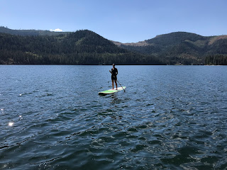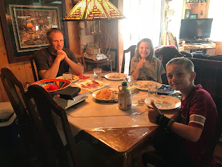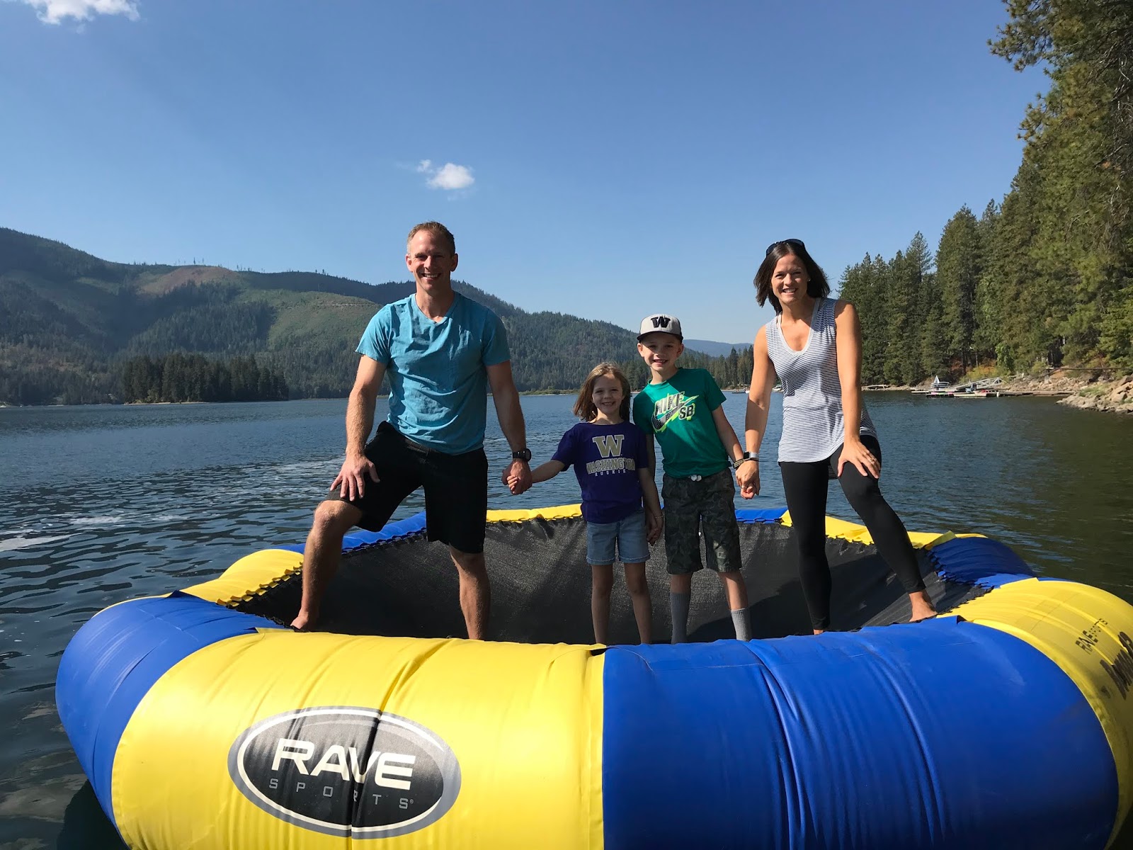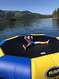We paddle boarded, read in the sunshine, watched football, ate, hiked, took boat rides, jumped on the water trampoline, played games, and enjoyed family time all weekend long. Uncle Jimmy and Aunt Sara joined us for dinner Sunday evening, and the ribs and peach pie were amazing.
