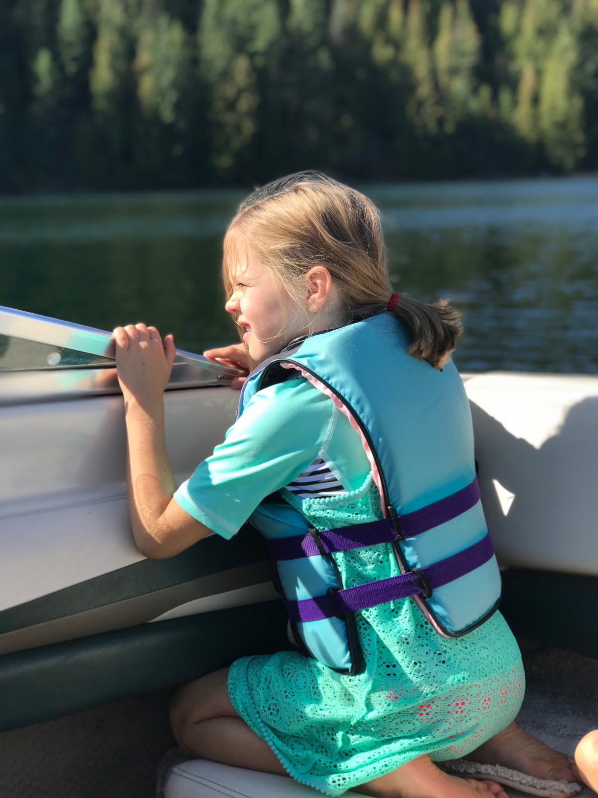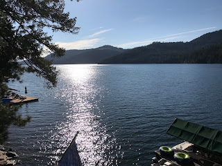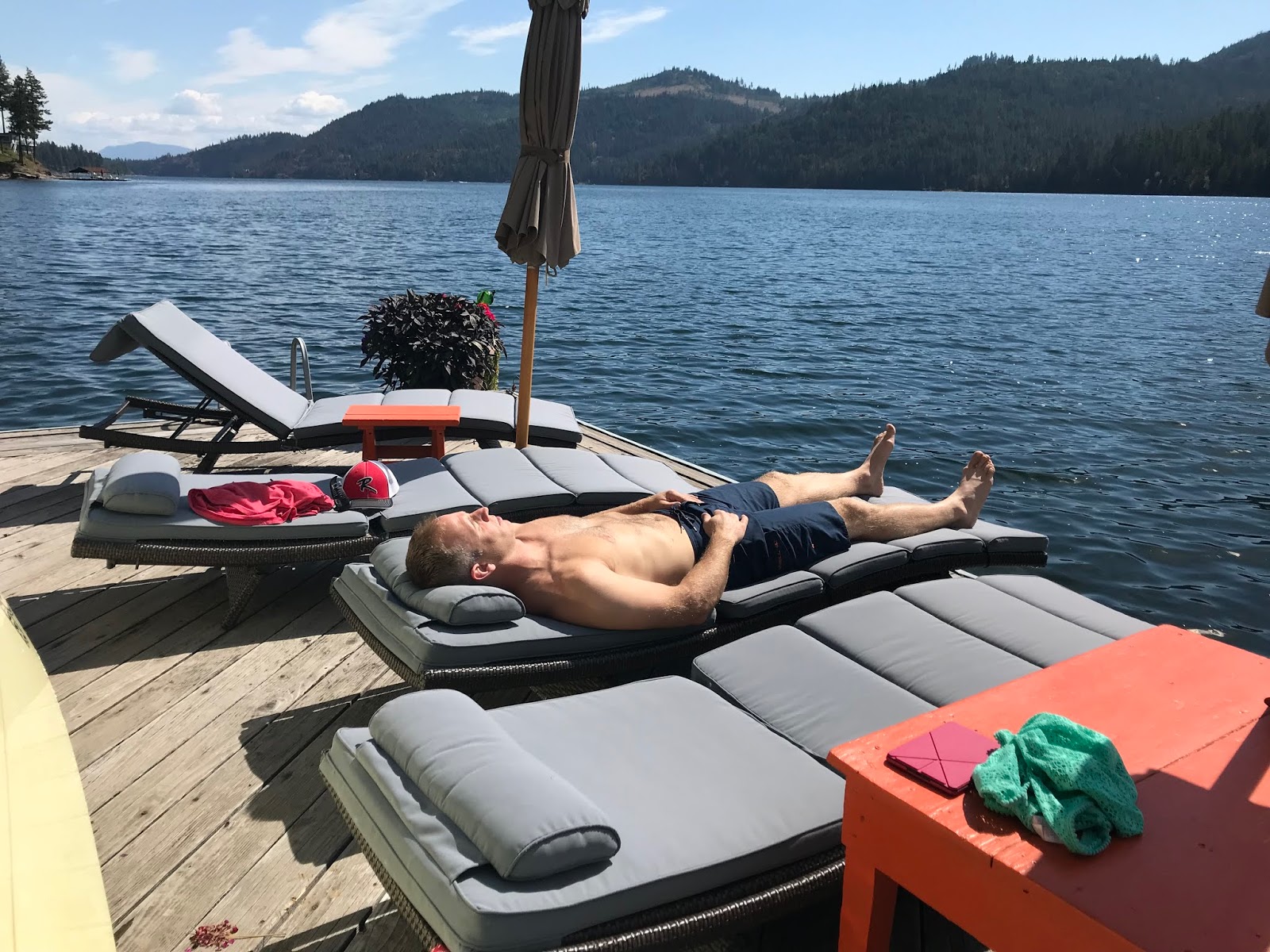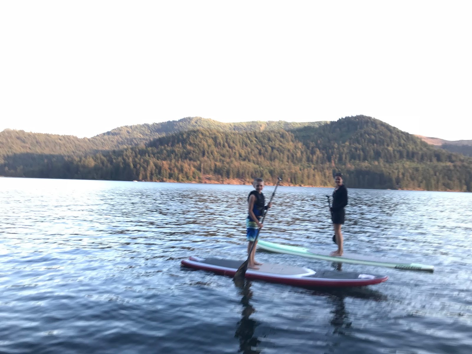 We paddle boarded, read in the sunshine, watched football, ate, hiked, took boat rides, jumped on the water trampoline, played games, and enjoyed family time all weekend long. Uncle Jimmy and Aunt Sara joined us for dinner Sunday evening, and the ribs and peach pie were amazing.