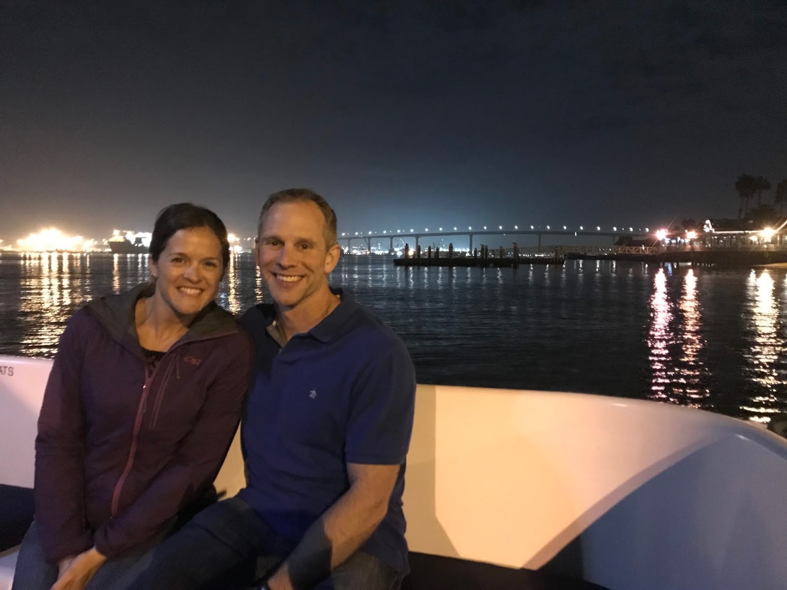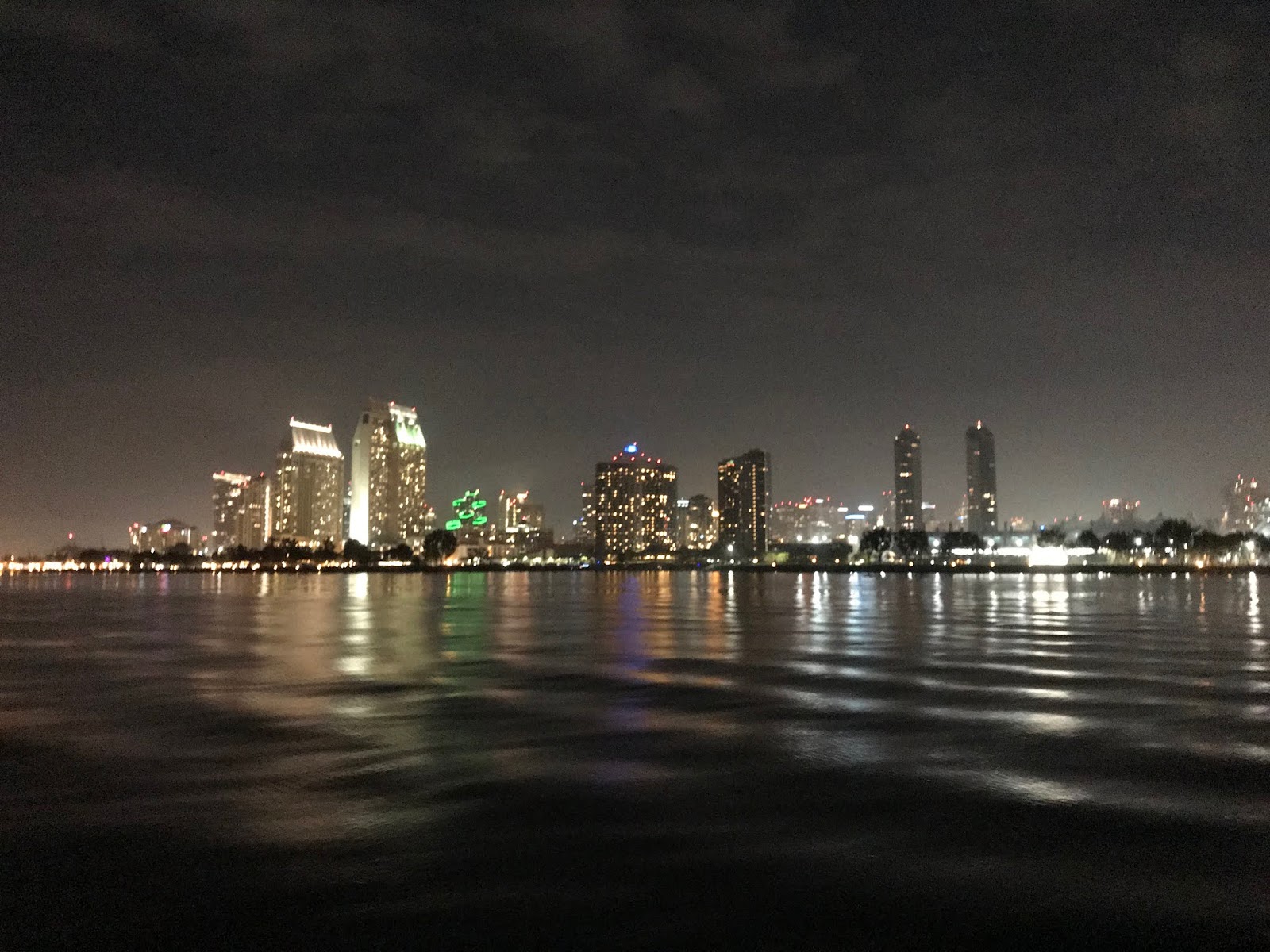 I went back to the hotel and joined Jim for a last evening in which we went to Coronado for dinner, to Miguel’s for Mexican. We took the ferry back and the night views were lovely!