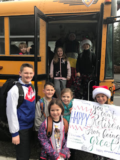 The woman who has driven the school bus for our neighborhood retired today. She has been driving our neighborhood route for about a decade! So we gathered kids from all three bus stops into one place and presented her with a sign, flowers, a card, a gift certificate to a local restaurant, and hugs with smiles! The kids had so much fun being a part of this surprise and she loved it!