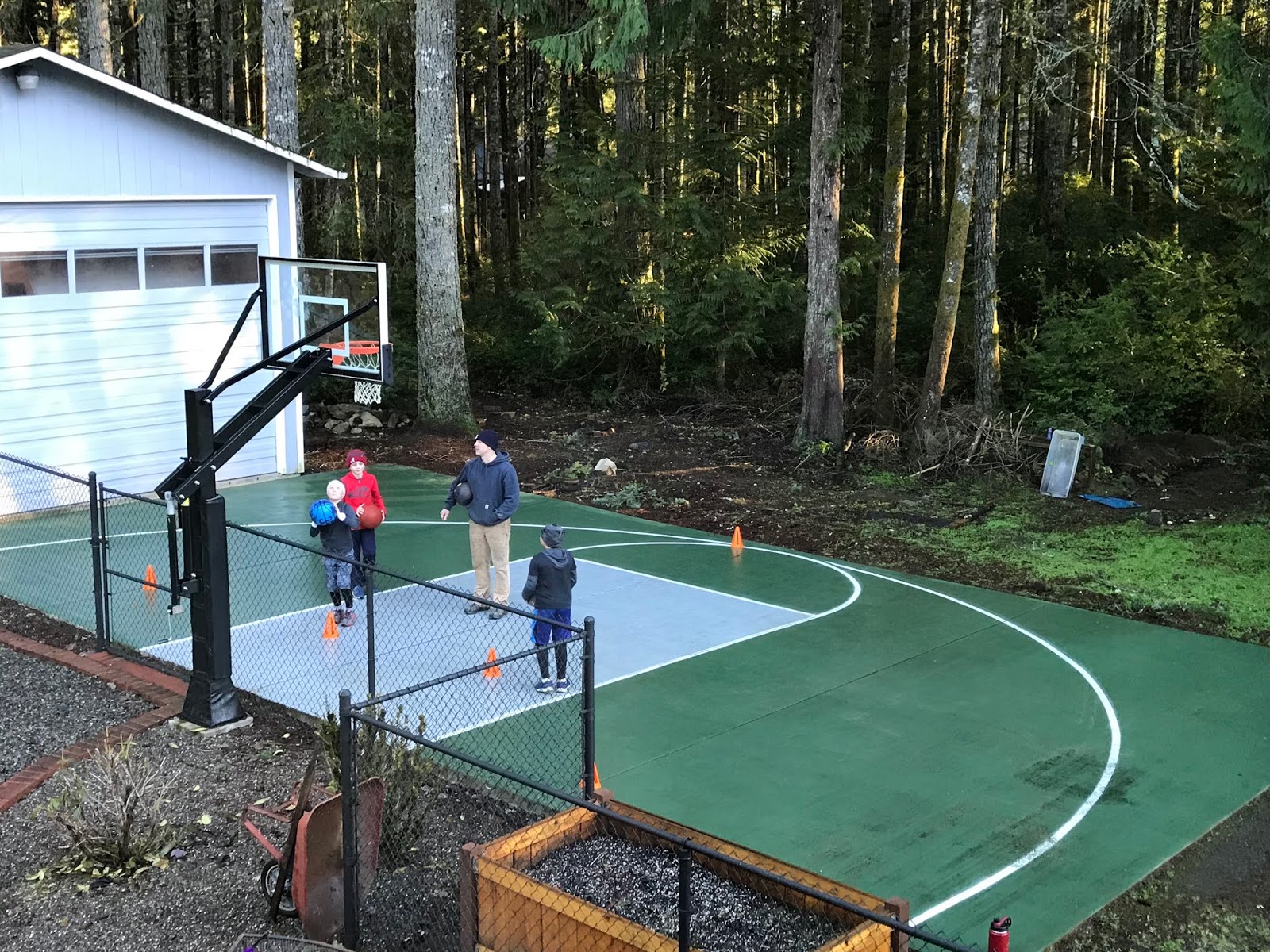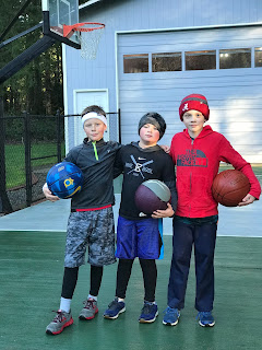 With basketball season coming soon, Jim has been hosting basketball practice for JT, Sawyer, and Ryder (who are all on the same team this winter). Our practices and games start in a few weeks, but we certainly have the space to host some practice. The boys look ready to play!