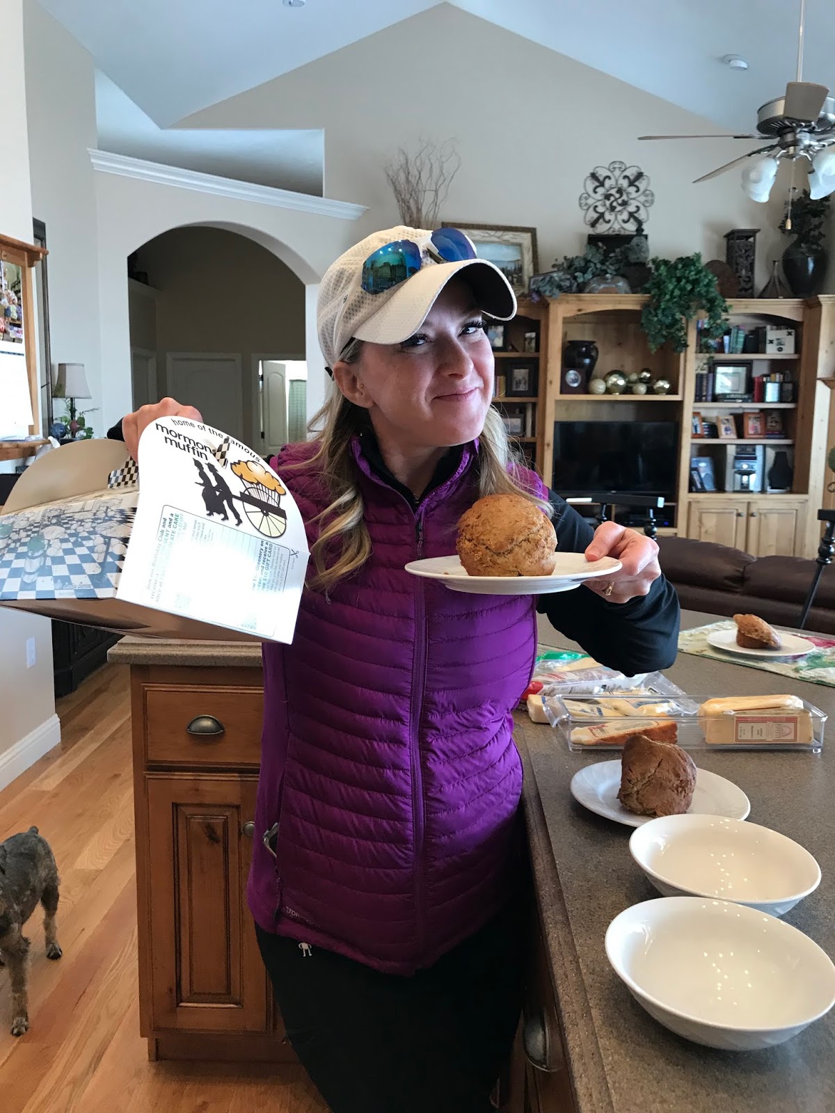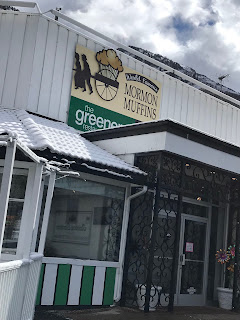 After skiing six miles, we stopped on the way home for the famous Mormon Muffins at the Rainbow Gift Shop. Sure enough, they were yummy!