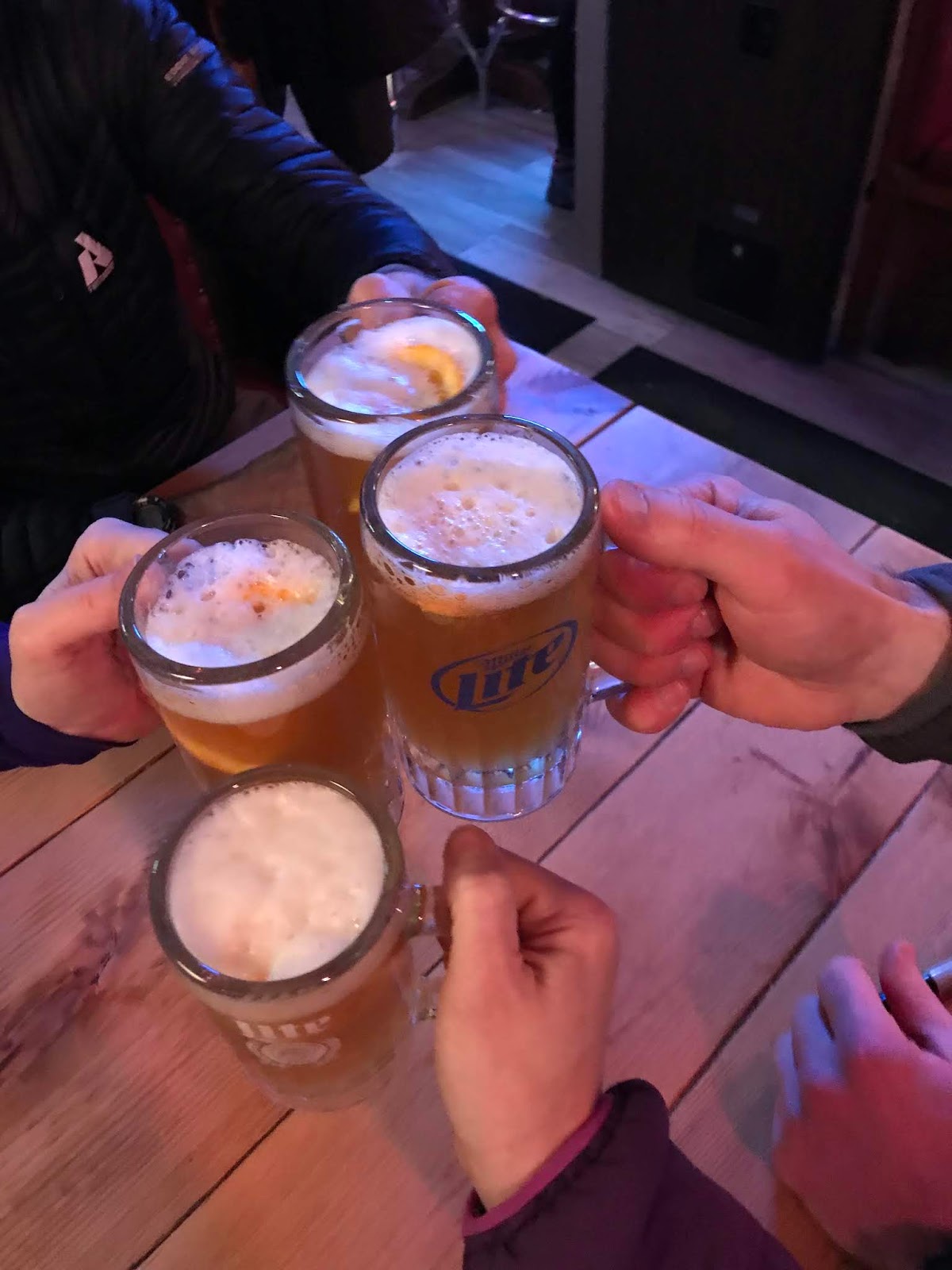 Afterward, we went to the Shooting Star Saloon for burgers, chips, and beer. They have a legendary menu: Star burger, Mini star burger, or hot dog. All come with chips. Sure enough, the burger was amazing… especially after a day of skiing!