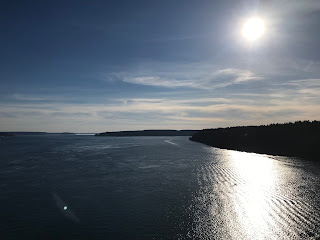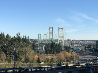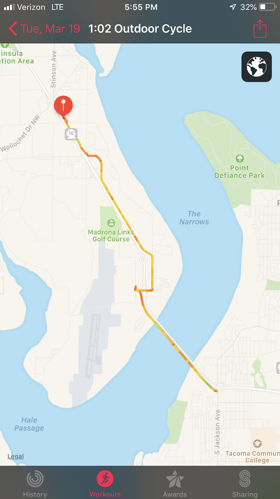 Haley has gymnastics for two hours twice a week, and sometimes I stay and work and watch, and other times I hit up Costco, and last week it was 76 degrees and JT stayed home with friends and I was itching to get out and ride! So I planned to bike a trail nearby, and then suddenly (already pedaling), I realized that I could bike the Tacoma Narrows bridge, which was only a few miles away. I had plenty of time! I’ve walked the bridge once, but it was so much fun to bike across. And it’s harder than it looks – that hill coming off the bridge is no joke!