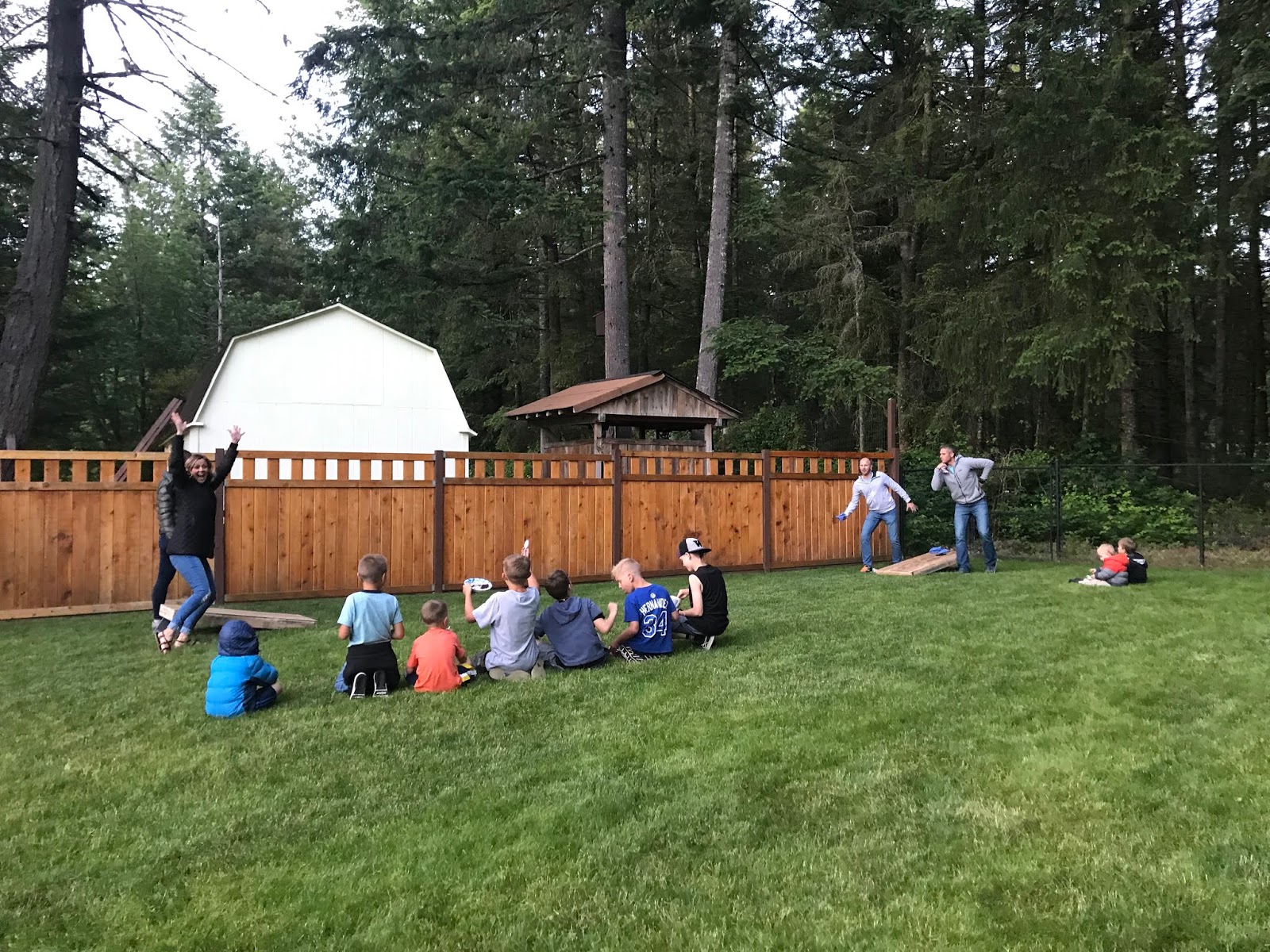 We let the kids play outside and run around until 11 PM! Then we said goodbyes and headed straight to bed. We woke up in the morning to party aftermath – clothes, cups, empty water bottles, chairs, plates, and even a purse in the yard. Ha!