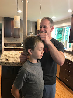 We hosted a family brunch on Saturday with JT’s choices: Jim’s French toast, sausages, and fruit.