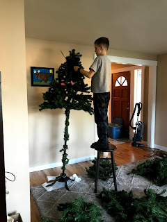 Our family left after the holidays and JT wanted to get moving on the Christmas tree, so he offered to set it up. We had two hours before we needed to leave for basketball, and he was a man on a mission.