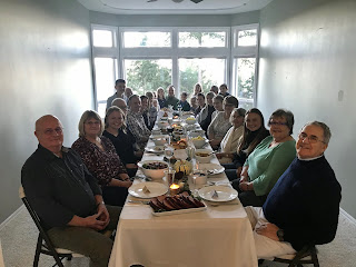 We sat down for dinner all in a row – 18 adults here and 8 children at a different table.