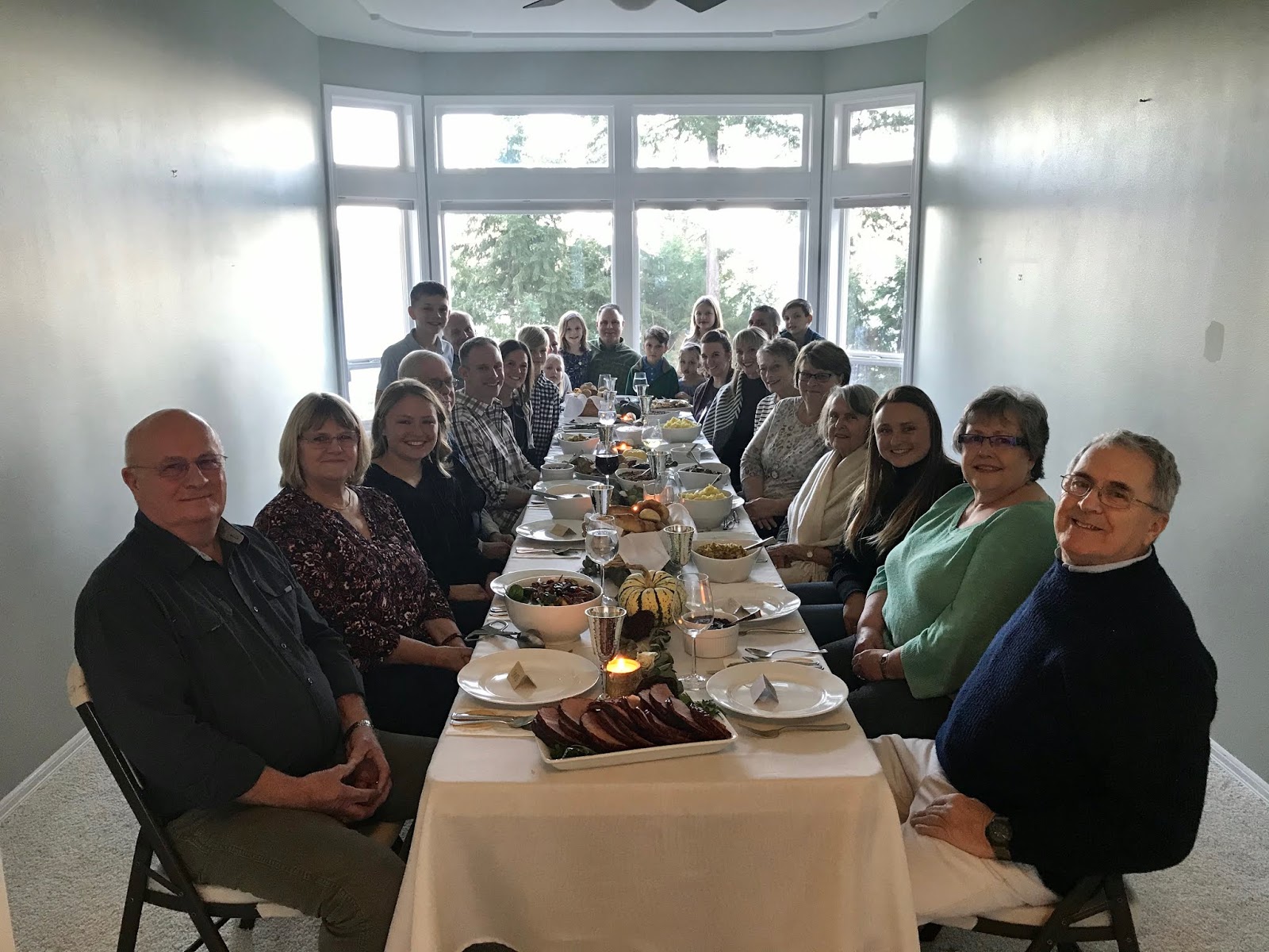 Then we made sweet potatoes, hung around in the kitchen talking, finally showered, and made it to my brother’s house for dinner at 2 pm. The table was gorgeous!