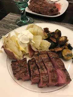 Tuesday was Christmas Eve, and I served flank steak, steamed baby red potatoes, and Brussels sprouts.