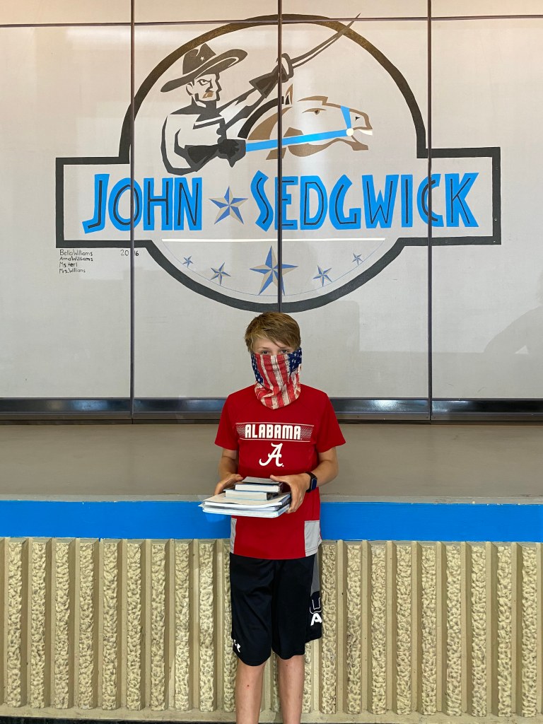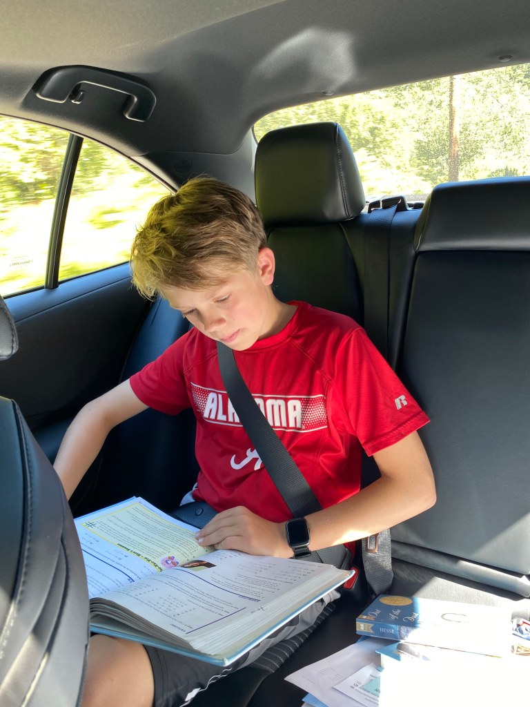 We attended orientation in person – so fun to be there for real. We picked up textbooks, got JT’s picture taken, met the principal (who was wearing Alabama and we liked immediately), and ordered school spirit wear.