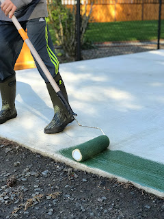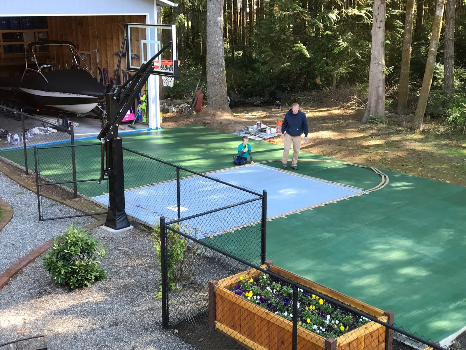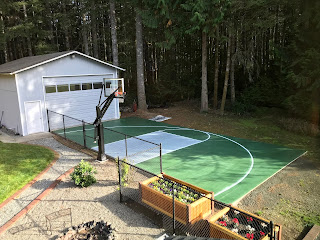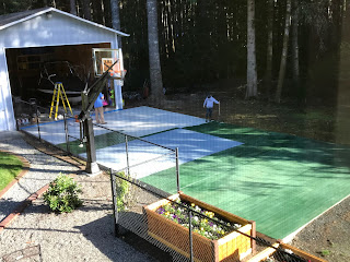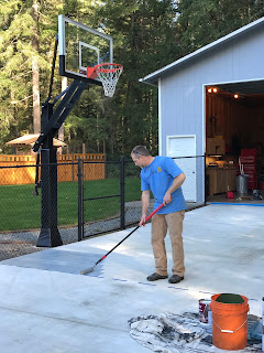Ever since we had the sport court poured earlier this year, Jim has been so excited to get it stained and lined. He took the whole weekend to do all the steps and we were thankful for great weather so he could finish this up before the rain settles in.