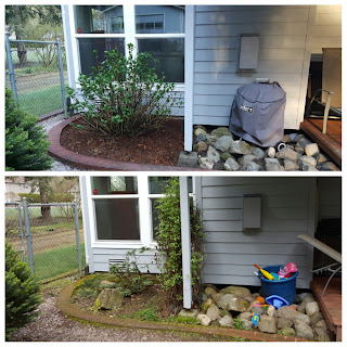 Saturday, we completed yard work phase 1B. I shoveled 2.5 yards of gravel and 3 yards of bark. It was awesome to finish and enjoy how it looks. Then we went down the street to our neighbor’s house for a backyard bbq/bonfire/birthday party.