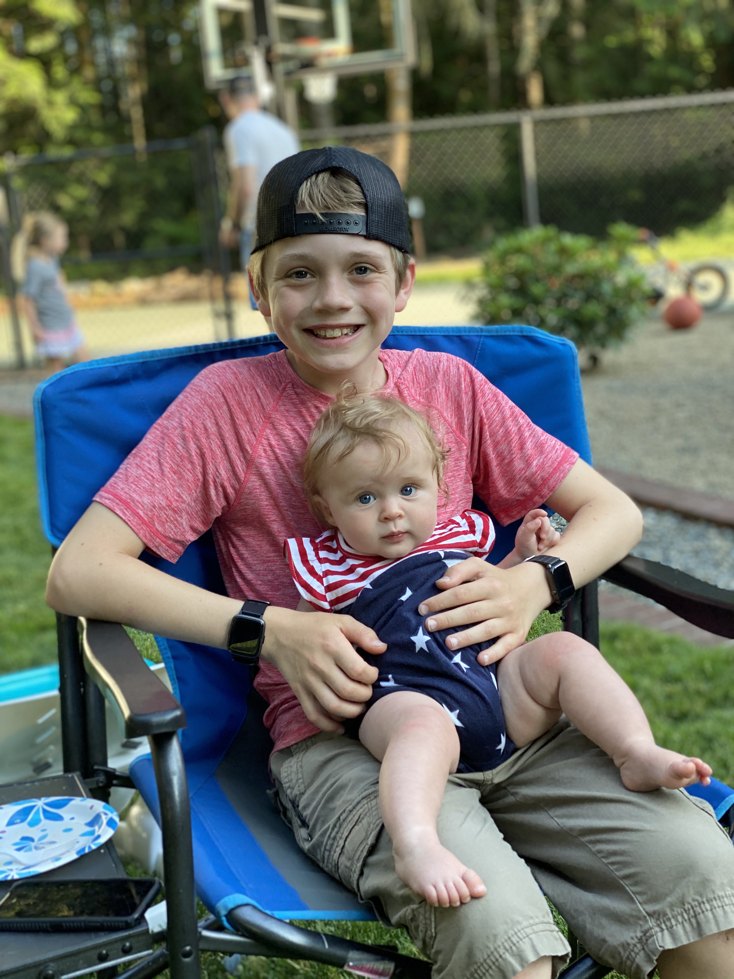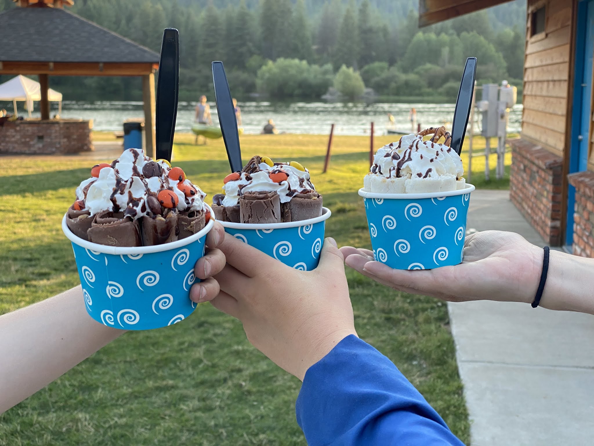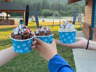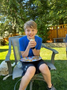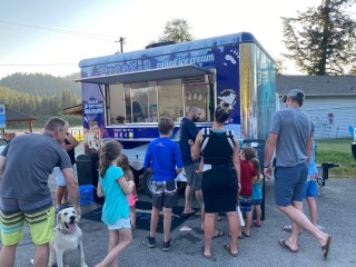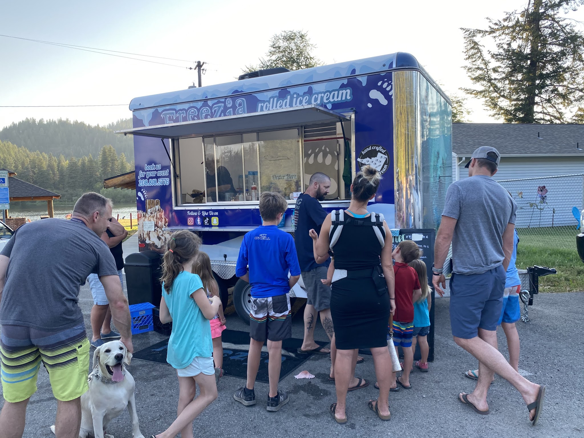 We also discovered an ice cream truck for rolled ice cream, which was new to me, a half mile down the road at the boat launch. So one evening we took a walk down there and treated ourselves. Maverick loved the walk because he could look over the bridge down into the water.