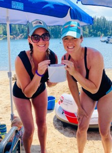 Playing beach volleyball on the sand bar…