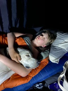Sleeping in the tent with the dog…