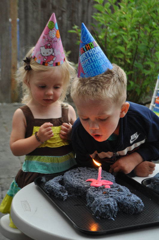 For JT and Haley’s birthdays this year, we decided to have one big family birthday party while my family was here from out of town. Haley has been looking forward to her birthday because then she will be “old enough” to “eat ice cream, oreos, licorice.” We had to explain to JT why he had a friend birthday, then a real birthday, then a family birthday, and finally a checkup for turning four. That’s a lot! He had a great checkup. He is 41 inches tall and weighs 37 pounds. He has grown a little more than the average three-year-old over the past year. He told me it’s all that great food he’s been eating!