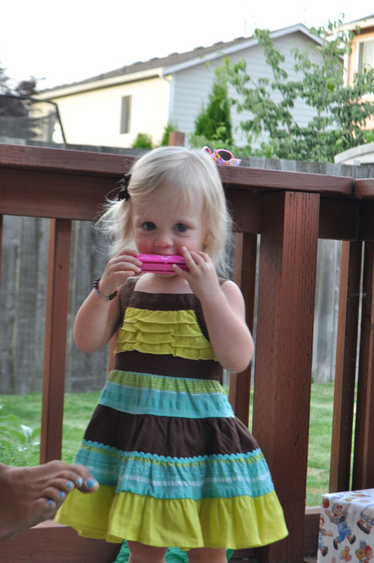 Then we let the kids open presents, one at a time, alternating. It was hilarious to watch Haley. It was really the first time she has understood what was going on. She was so excited and kept saying, “Open it?” and she was so animated about everything.