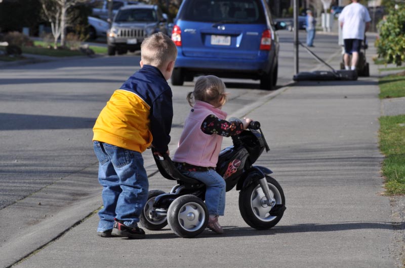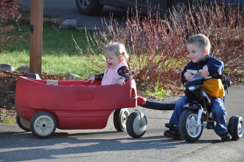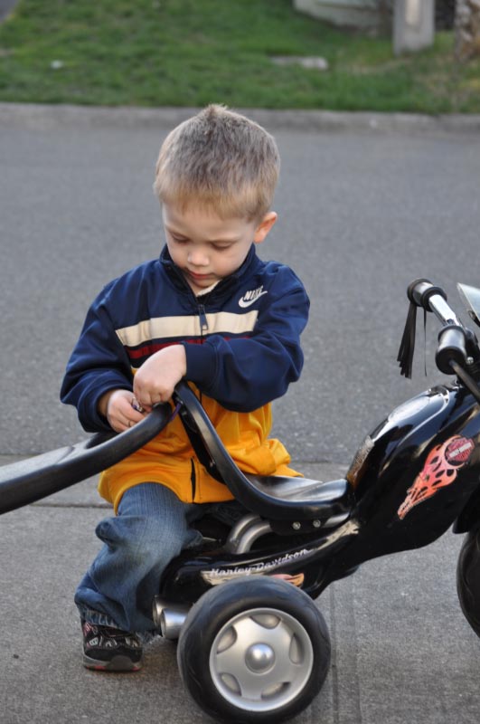 We spent some time in the yard with JT’s black truck. Somehow I got conned into pushing it all over, but it was good exercise.