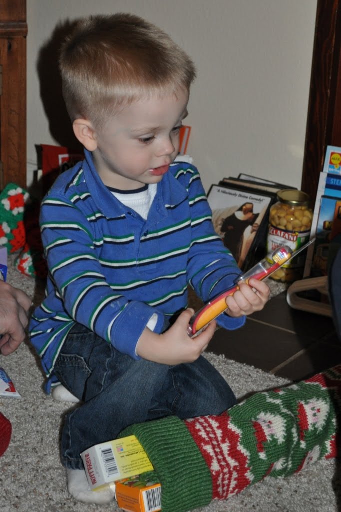 Jim and I woke up before our children on Christmas. I wonder how long that will last? Anyway, I had time to pop the coffee cake in the oven and we opened our stockings… then we couldn’t wait any longer and we got JT up to do his stocking.