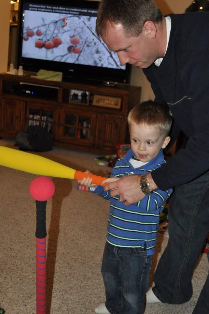 Grandpa and Grandma Cole arrived just in time to change diapers and dress children while Jim and I got ready for the day. Then we opened presents with them… JT had become an opening professional by then.