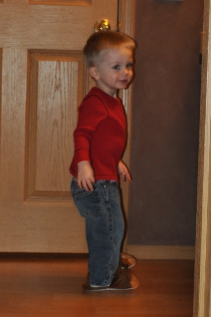 But JT wanted to help, so he got to hand me the ornaments. He only dropped one. 🙂